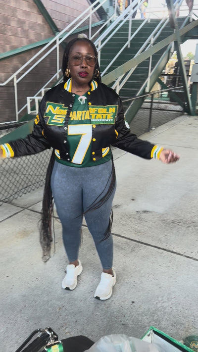 NORFOLK YK1K SATIN VARSITY JACKET CROPPED BLACK